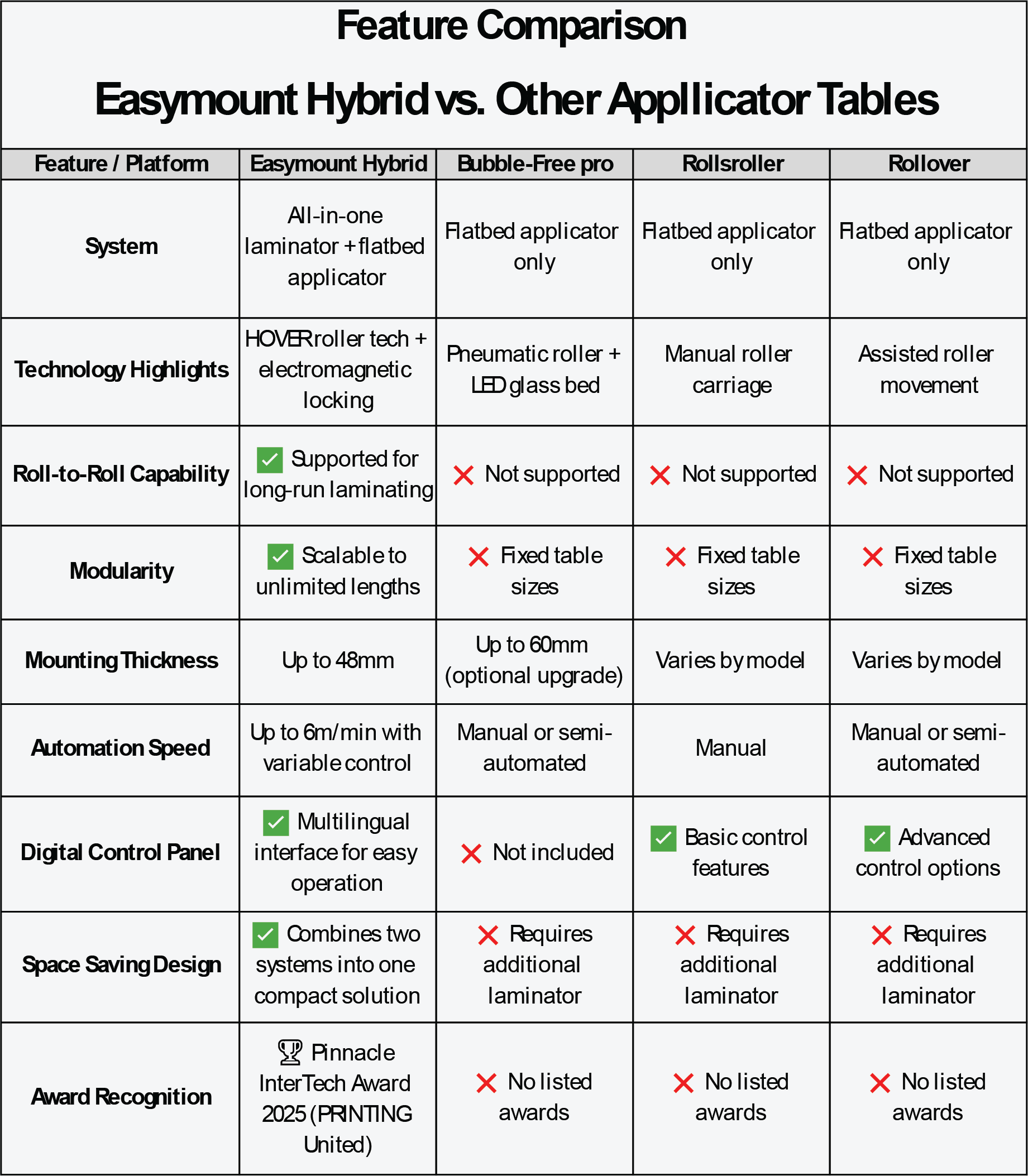 Recognized with the 2025 Pinnacle InterTech Award, the Easymount Hybrid sets a new benchmark in finishing innovation—ideal for sign makers, print finishers, and graphics producers seeking a flexible, future-proof solution.